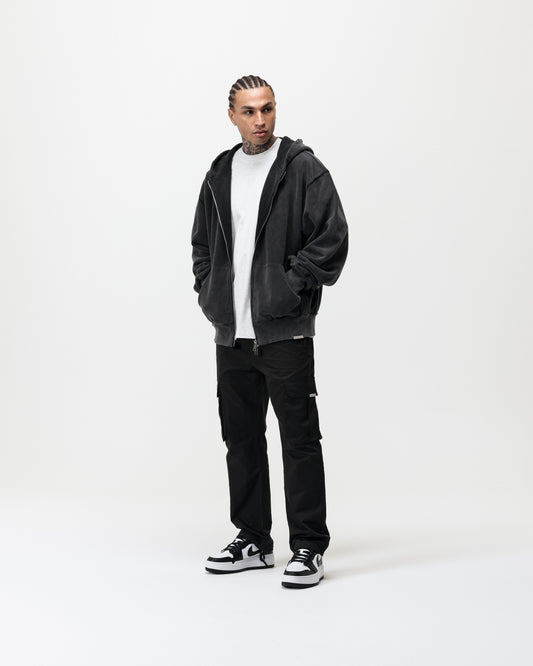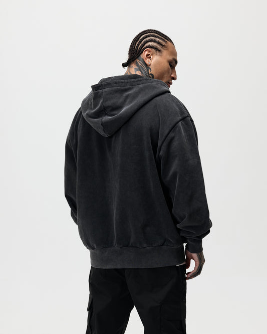 LUXURY ESSENTIALISM ZIP THROUGH HOODIE - VINTAGE WASHED GREY