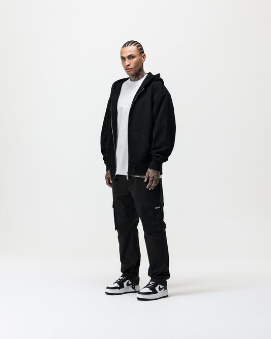 LUXURY ESSENTIALISM ZIP THROUGH HOODIE - SOLID BLACK