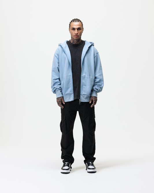 LUXURY ESSENTIALISM ZIP THROUGH HOODIE - WASHED POWDER BLUE